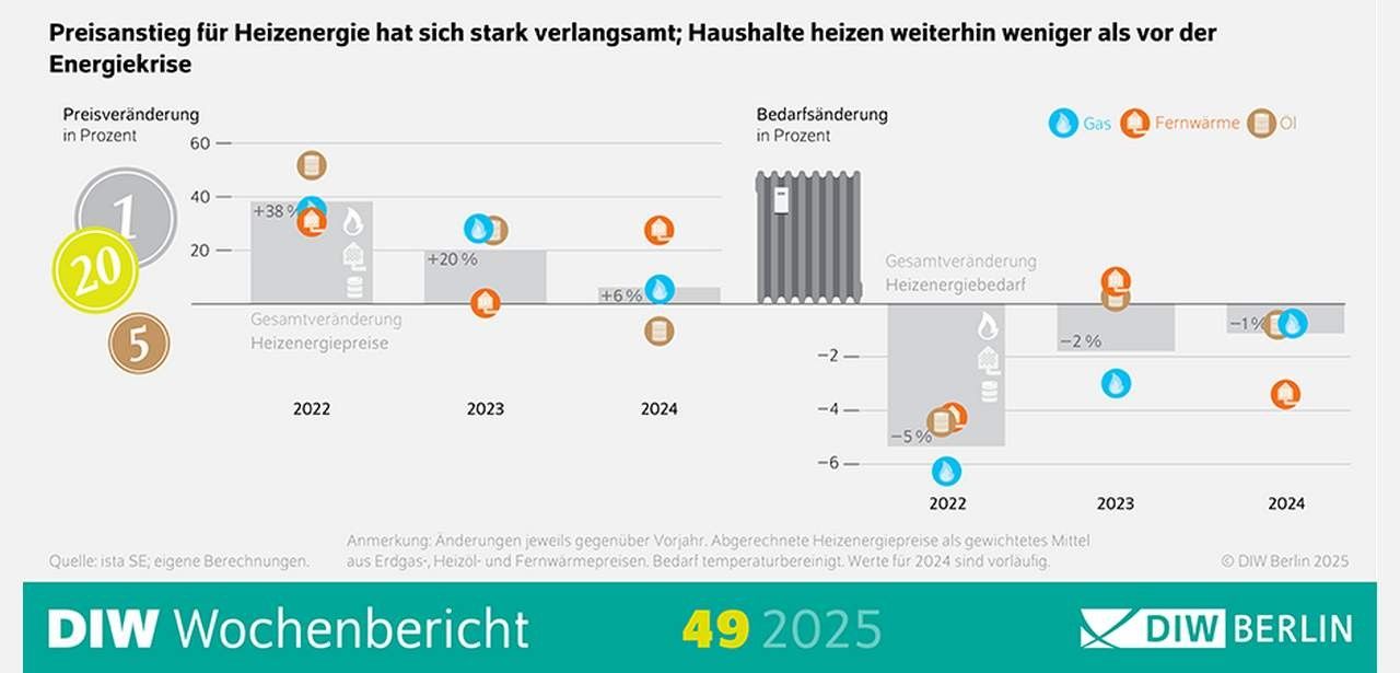 Nur sechs Prozent Mehrkosten bei Heizenergie 2024 laut DIW