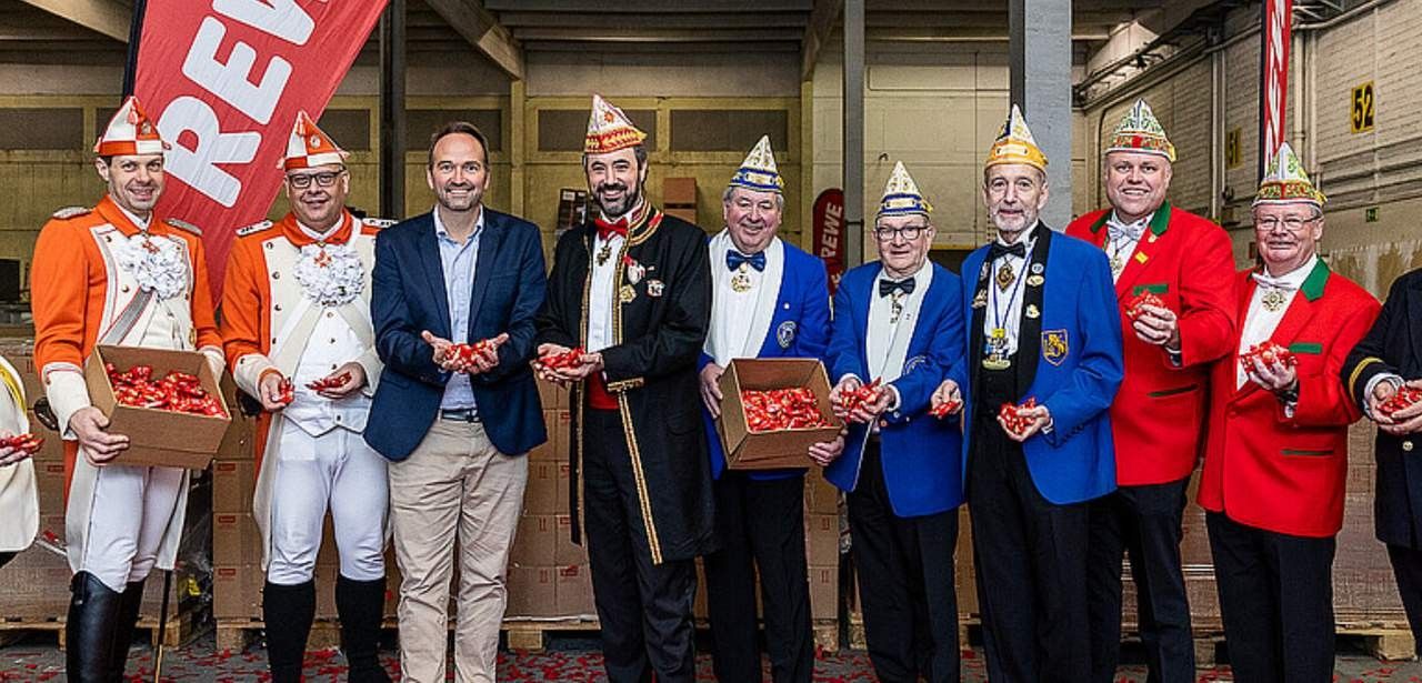 Unter dem Sessionsmotto „ALAAF – Mer dun et för Kölle“ hat REWE Region West gemeinsam mit dem Festkomitee Kölner Karneval eine großzügige Verteilung von Kamelle organisiert. Insgesamt verließen 32 Paletten mit 2020 Kartons Schokowaffeln das Lager und wurden direkt an die Veedelszüge in diversen Kölner Stadtteilen übergeben. Die Zuwendung soll die ehrenamtliche Arbeit finanziell unterstützen, für ausreichende Süßigkeiten sorgen und den karnevalistischen Gemeinschaftsgeist in den Quartieren nachhaltig positiv sichtbar fördern.
